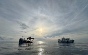 14 October 2025 – A very successful sea operation took place last week, leading to a significant extension of the ORCA submarine telescope. In about three days of operation in a very flat sea, five new detection units were installed in the deep sea and connected to the detector. In addition a set of four detection units already deployed in a previous campaign was connected to the second node of the submarine network, which was recently installed. Finally, a new tripod bearing an acoustic emitter to be used for positioning purposes was installed.