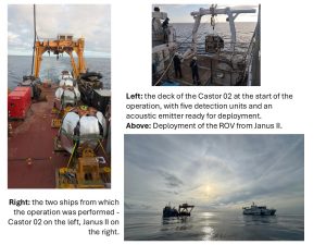 As usual, the operation was performed with two ships: the Castor of Foselev, for deployment of the detection units, and the Janus II of SAAS (formerly Comex), equipped with the Apache deep-sea remotely operated vehicle (ROV), for submarine operations.